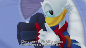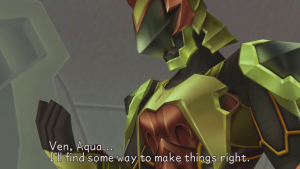 If Terra’s the one who obeys the first person to talk to him, Aqua’s the one who obeys her principles no matter who talks to her. Unlike Terra’s storyline, this isn’t a precipice to disaster, but it is something she has to work on, hopefully before everything else falls to pieces.