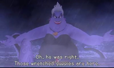 Dream Drop Distance is the third and, to date, final Command Deck game in the series. Here, there’s no Command merging system. Instead Commands are tied into another feature: the Dream Eaters. Dream Eaters come in two strains: the Nightmares that serve as your primary enemies in the Sleeping Worlds, and the Spirits that serve as your allies. Every minor enemy in the game has a Spirit equivalent that can serve as your de facto “Donald and Goofy”. Like in Kingdom Hearts 2, you can only have two at a time but can swap in a third without any additional trouble.