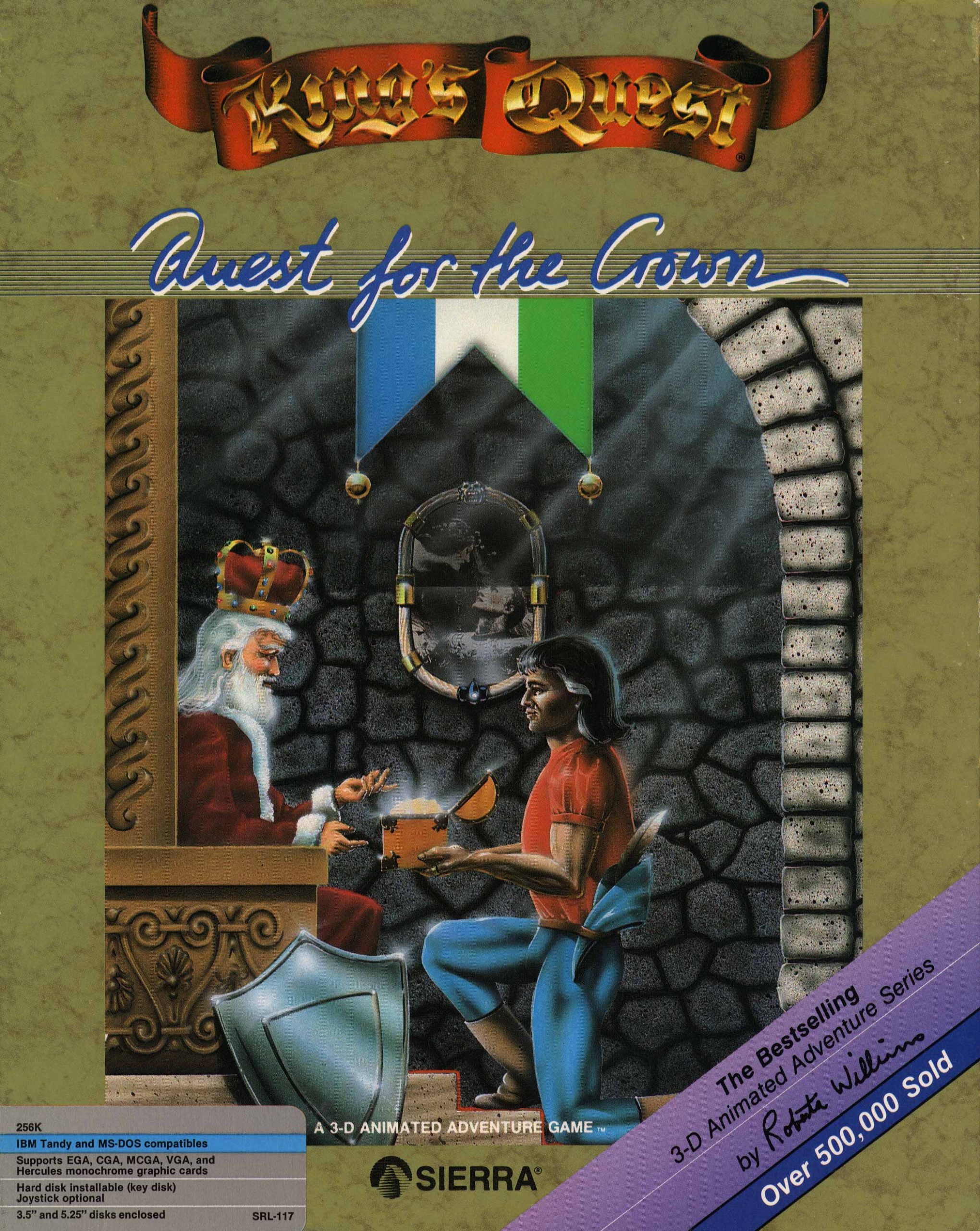King’s Quest was initially released for the PCjr in 1984. Due to the unpopularity of the platform it went largely unnoticed until it was ported to other computers, where it sold substantially better. Although it loads instantly when installed on the hard disk on DOS-based computers, many other ports were not so lucky. In versions such as the Apple II port, disks need to be swapped continuously and it takes several seconds to load each screen, as it slowly draws the outline of the scenery and then fills in the color.