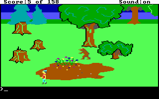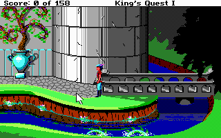 King’s Quest is, of course, a simple game, one which may seem borderline unplayable compared to the numerous adventure games that succeeded it. Its historical importance can’t be denied though. With a bit of patience, transport yourself into the mindset of a computer user in the mid-1980s, long before the internet became widespread, when hard disks were insanely expensive, and 128k was a helluva lot of RAM. When PCs were mostly used for business applications and many games were, at best, shifty arcade ports or amateur software, King’s Quest was a fantastic world inside your computer, one which was more than a series of static screens, with lush scenery and terrifying monsters, and which promised hours upon hours of adventure. It might be hard to appreciate now, but it was an amazing accomplishment at the time.