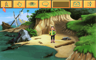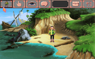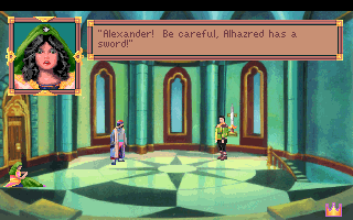The hero this time is Alexander once again. It hasn’t been long since he and the rest of the Graham family were rescued in King’s Quest V, but he can’t forget the face of Cassima, the scullery maid and slave of Mordack. She, like him, was also was captured royalty, and is actually princess of the Land of Green Isles. After inviting Alexander to visit her one day, she returns home, never to be heard from again. As it turns out, no one in Daventry has even heard of the place. When looking into the magic mirror, Alexander sees a vision of the lovely girl crying for help. Memorizing the night sky from his vision, he uses the positioning of the stars to set sail and find her. Naturally, a storm rolls in and leaves Alexander shipwrecked… conveniently enough, right in the Land of the Green Isles. Here he learns that Cassima has been imprisoned by the Vizier Abdul Alhazred and is being forced into marriage, with Alexander being the only hope of rescue.