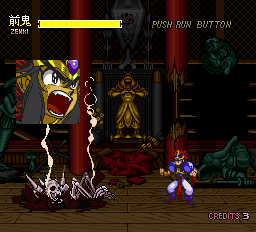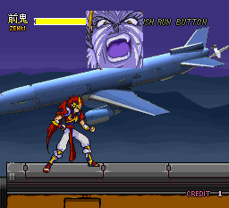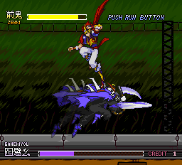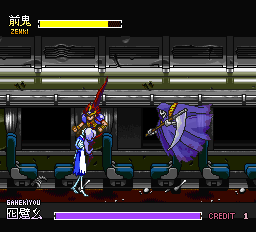 The story is also total nonsense: Chiaki gets a phone call from some girl who is getting harassed by a demon, so she and Zenki head out to save her, but in doing so the girl gets kidnapped while the heroes are warped to some other dimension. Cue lots of running battles while in pursuit, taking in planes, trains and anthropomorphic automobiles (no, I’m not making this up – you encounter said vehicles in this exact order). Just when you think you’ve rescued the girl she’s killed and dissolves in your arms, leaving you to take on the final bad guy. After this it goes really weird, and what seems to be Inugami from the anime appears with his pet wolf, Kokutei. They dispatch a surprise demon attack, and the credits roll… Language barrier aside, it makes about as much sense as an episode of Dragon Ball. Certainly not on the grandiose level of Guardian Heroes narrative.