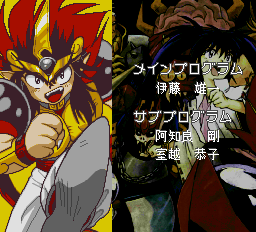 In truth it’s more like a straight one-on-one fighter, with exposition dialogue before each fight. No rounds, just a single health bar for each enemy and a fight to the death. There are some scrolling stages with smaller zako enemies, but there are only seven such sections in the entire game and they are very short, perhaps less than a minute each. The combat takes place on a single plane, like Street Fighter, but is extremely limited. The PC-FX has six face buttons, but only three are used: one for blocking, one for jumping, and an attack button to be used in combination with the d-pad for different moves. The actual moveset for each of the two characters is also painfully limited. Blocking though is actually quite useful, with fights against the bigger bosses requiring a good rhythm and precise timing to avoid taking massive damage.