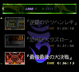 As a game it’s woefully insubstantial, even in the context of the era it was released in, where games were shorter. And yet it seems flippant to dismiss Vajura Fight so easily, given the awe and respect it holds. In fairness it does look gorgeous – and I mean absolutely gorgeous, one of the most gorgeous low-resolution 2D games ever developed. The number of frames of animation for everything that happens is striking, and the size of some sprites is massive. It’s almost like watching an anime, except instead of animation cells having been drawn by hand, it uses chunky pixelated sprites for everything. The Sega Saturn has a lot of respect as a 2D powerhouse, but it’s clear the PC-FX was damn good in this regard too. The stage with a sunset city as the backdrop is truly staggering, especially when you’re desperately clambering up a collapsing building. The amount of effort the team put into the minutiae of the game’s visuals is astounding, and is probably why it’s so short in other respects.