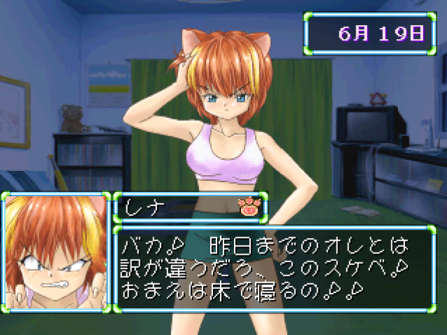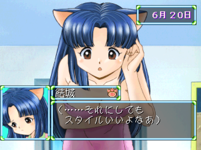 Mimi is a kind of middle ground between Yuki and Lena, combining the former’s femininity with the latter’s energetic personality. The result is a somewhat more childish but also more active character than the others. Her speech (in both forms) is more forceful; she’s more likely to take part in physical activities; and she’s something of an otaku, spending her free time reading Shounen Jump or playing video games. Voiced by Yuko Miyamura.