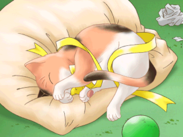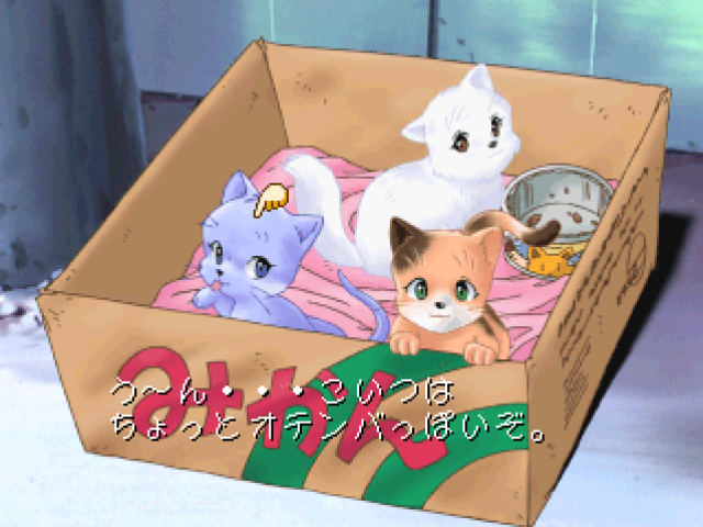 The closest Kitty on your Lap comes to having any substance, and the last possible defense one can muster in its favor, is the historical value it holds. One could read the game not as a straight embodiment of anime conventions, but as a parody of them; one meant to demonstrate how empty and absurd those conventions can be. A strained reading, but if true, it would make Kitty on your Lap an esoteric predecessor to later absurdist visual novels like PacaPlus, Creature Comforts, and especially Hatoful Boyfriend. Unfortunately, that reading doesn’t hold up to scrutiny. Bereft of the self-awareness and willingness to play with convention and form that would exemplify these later games, Kitty on your Lap becomes the exact sort of game it might lampoon.