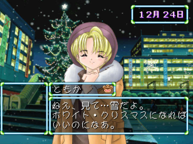 Likewise, because the world is made specifically for the player’s enjoyment of it within the moment, the game will not allow those moments to build up to something more. When Kouichi’s landlady threatens him with eviction for violating her no pets policy, he proceeds with his studies/work/life just as smoothly as he did the day before. The same holds true when his cat runs away to spare him the possibility of ending up on the street. In the end, the conflict is resolved not through any change to the characters or their relationships, or to how they change their lives, but through magic: the Cat God appears to the landlady in her dreams and cures her of her allergies, the source of her policy.