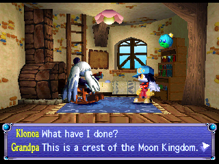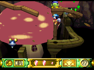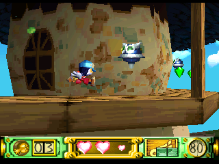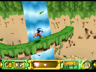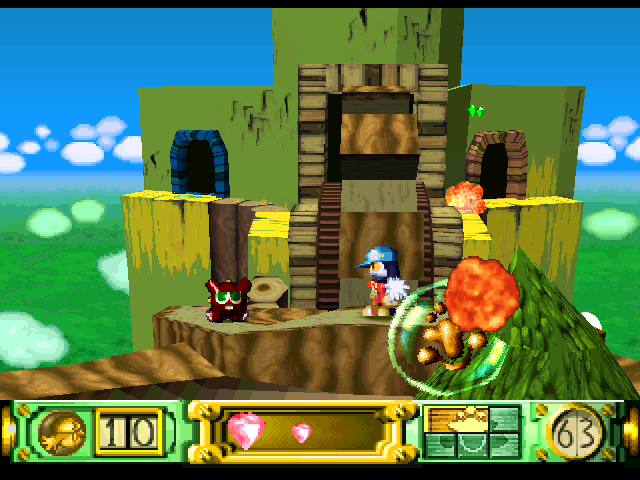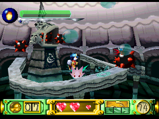 Klonoa’s first adventure begins when he witnesses a meteor falling from the sky. Upon checking the crash site, Klonoa discovers a ring in the wreckage. This ring, naturally, has super powers, and is the home of floating ball of light called Huepow. The villain is a rather evil bastard named Ghadius, who’s often accompanied by his foolish-but-still-nefarious sidekick Joka. There are numerous cutscenes throughout the game, sometimes in the middle of the stage, but they can be easily skipped.