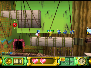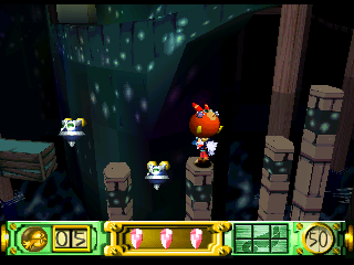 The gameplay in the Klonoa games is roughly derivative of Super Mario Bros. 2. Klonoa has a magic ring that inflates bad guys (much like the dude from Dig Dug), which he can then carry over his head like a balloon. You can toss one foe at another to kill them, but you can also leap and spring on top of their heads, allowing you double jump. It seems simple at first, but leads to some interesting puzzles.