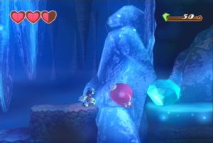 These brainteasers usually seem kinda simplistic – let’s say that you have a ledge that’s out of Klonoa’s reach, but the only enemy around is way on the other side of the area. How can you figure out a way to capture the enemy and bring it back to the tall ledge? You can’t double jump or throw it, because then you’d lose the enemy. You can’t take it through narrow passages, because it won’t fit. They can also require some tight reflexes, to properly leap, grab another enemy, then leap again before you fall. Although these certainly aren’t Legend of Zelda-caliber puzzles, they’re require a bit more thought than you would usually find in a platforming game. They’re also pretty forgiving – since enemies respawn infinitely, you can just head back to retrieve another one if you screw up.