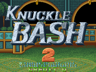 Knuckle Bash never received a port to home consoles. The arcade version was published by Atari Games in North America. A sequel was apparently planned, as after Toaplan went out of business, a modified version of Knuckle Bash’s arcade board was discovered. The only two noticeable differences are a new title screen and a change button. The change button lets you switch between any of the fighters on the fly, even letting two people have the same one. The change button may have been implemented for testing purposes, but if the fighters were more differentiated, it could have been a very nice new gameplay mechanic. Other than the new title screen and change button, Knuckle Bash 2 is exactly the same as the first one.