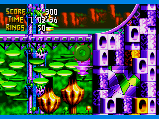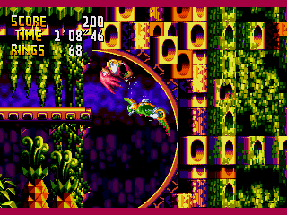 The graphics tend to vary rather strongly in terms of quality. Some of the new characters, like Vector and Espio look great. Knuckles, however has a new sprite with an overly pink shade an odd looking face that looks more than a little off. Likewise, some of the new zones go from looking somewhat nice, if a little plain, to using the hardware’s color pallete so hard that they come off as more than a little garish. It doesn’t help that the game uses its scaling feature as often as it can possibly get away with, which ends up more often than not looking a little silly. As typical for even of the worst Sonic games, however, the music is usually very good. The theme for the game’s first zone, “Door into Summer”, even received an excellent orchestral remix in Sonic Generations.