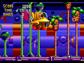 The game is full of these sorts of half-baked ideas, few of which ever really pan out. One new powerup monitor makes the character that breaks it grow very large. While it makes the affected character invincible, it seems like it’s only there to showcase the 32X’s scaling abilities. The game also has a day/night cycle that cycles out every couple of acts. Supposedly, this actually quite a number of things, like minor changes in level layout, which enemies appear in an act, and the difficulty of bosses. Unfortunately, it’s rather hard to actually notice in practice, given how interchangeable each level truly is, and the roulette making it difficult to intentionally get a specific level so as to confirm such changes.
