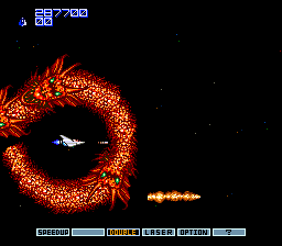 Now those flame dragons will pop out, entrap the Vic Viper in