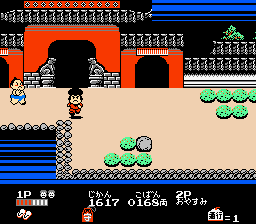 After each level Goemon will spread his wealth with the townsfolk, being the kind