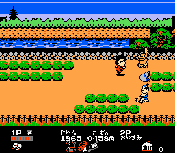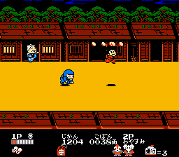 That wacky Ebisumaru chap will pick up all of the coins that Goemon drops! Ha! Will