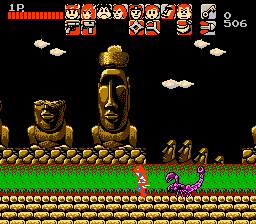 through the levels. Here's Moai-kun bashing things in the lower hallways of the Castlevania level. |