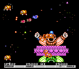 the Famicom/NES version of Parodius features a large circus girl as opposed
