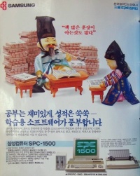 tape drive and variant of Hu-BASIC integrated; variant models SPC-1100 (for use in schools) and SPC-1000A (with integrated speaker); from 1986, many companies built graphics enhancer cards (VDP) with 16 colors and sprite capabilities |