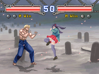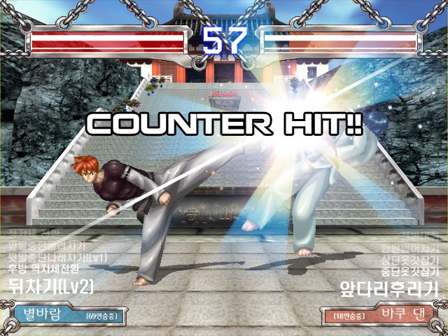 This sequel was first uploaded in 1993 as a preview version, the final followed one year later. Nonetheless, Byulbram refused to follow the genre trend and once again delivered a game vastly different from Street Fighter & co. The other than the directional keys the game uses six attack keys, but each button correspondents to a fixed move, with no room for special commands. The game actually feels more like a 3D fighter, but it isn't very playable from a modern perspective and works rather on memorization of attack patterns rather than reactions.