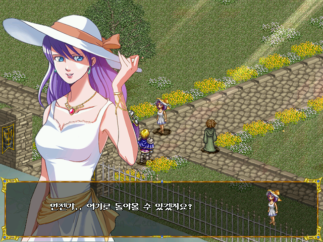 Her Knights was Byulbram's first commercially published game and should lay the foundation for his most popular series. The SRPG tells the beginning of Princess Lemian's saga. She starts walking around at the foreign school she spent her youth at. This place works as kind of a tutorial, were the basics of the game and some introductory lessons about the game world can be asked from the teachers. On the continent, however, war has broken out on the continent, and so a group of personal lifeguards, Her Knights, arrive just in time before she gets kidnapped by hired brigands and to escort her to her home country. So the long and dangerous journey begins.