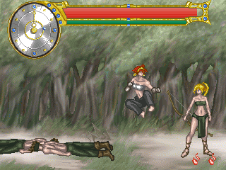 Most enemies drop healing items or stat boosts upon defeat, so most of the time one takes on the next group fully restored. That doesn't mean the game is easy, though, as the life bar is depleted just as fast as it is recharged. After a handful of very short stages, the game is already over, leaving only the higher difficulty levels for replay value.