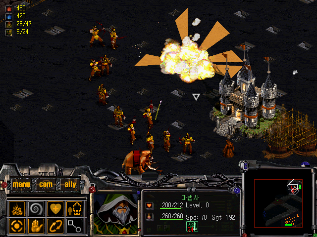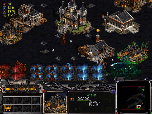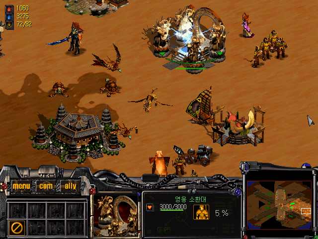 Like in Westwoods hit series, buildings are placed on the map after their construction, and all buildings and units are comfortably accessible through a single menu. The most obvious rip-off are the mining vehicles that gather minerals from the earth. Only two of the factions were initially available, the third one was added by the extension Son'gweon-eui Yamang released in the same year as the main game. The factions do not require entirely different playing styles, but are rather similar with the differences mostly in design, details and of course the individual hero units, which were still not very common in RTS in 1998.