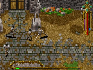 The story about a warrior that seeks revenge on the evil lord that has slaughtered his entire village is a beaten horse, but where the game falls flat the most is its action battle system. There's a severe lack of variety, as the hero only knows no offensive moves other than a standard combo and a dash attack. A block button is supposed to bring more depth to the fighting, but it puts the player in a worse situation more often than not, so a combination of evasion and button mashing is always more effective, the incredibly stupid AI takes care of the rest. Even the bosses seem ridiculously easy at first, that is until they switch into near-invincible mode, which requires hours of grinding to even be able to touch them at this state. There are also only three different weapon types, swords, halberds and (utterly useless) bows. Funny enough, there is a bar that recharges in between attacks and determines the strength of the next stroke, much like in Final Fantasy Adventure on the classic Game Boy.