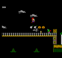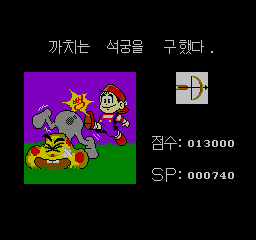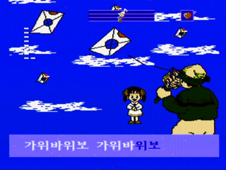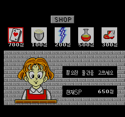 The game resembles Alex Kidd in Miracle World quite a bit. Kkachi has to retrieve six keys from six stages that are selectable from the beginning. Enemies are either beaten by slapping them or by using limited special moves. There are random items (garlic, fruit, etc.) lieing or floating around throughout the levels that amount to money, which can be used in stores to buy items. With the pause button one accesses an inventory screen where said items and moves are used. After each (mostly uninspired) bossfight, Kkachi gets also a special weapon only usable against bosses. They were probably going for a Mega Man thing here, but the mechanic is broken and only the first weapon ever gained can be used, and even that only once throughout the entire game.