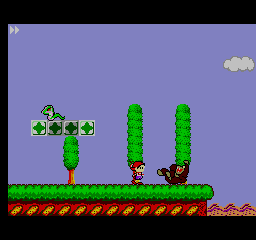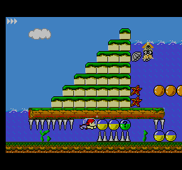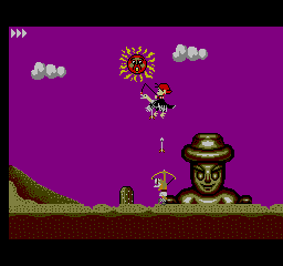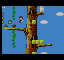 Every stage not only follows its own graphical theme, but also a distinctive design approach. In the high tech level one travels between individual screens through tubes, the tree is climbed vertically, and so on. A swimming stage and a shooter sequence on a vulture bring even more variety.