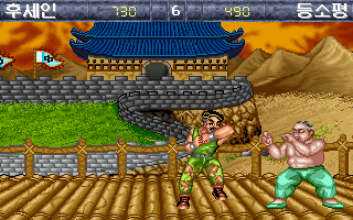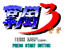 Samgukji 3 is a port of Panda Software's famous Sango Fighter, although it is unknown whether or not it had the blessing of the Taiwanese company. Only seven of the playable characters made it onto the 8 megabit cart, which is puzzling after Jang Pung 3 managed to squeeze 12 into the same size, but the Korean version is actually much more playable than its big brother from the PC. The fighting engine is basically the same as in Jang Pung 3.