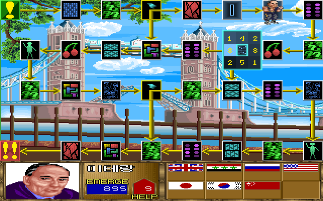 In 1995, Open gave up the home consoles and started developing for the PC, following a trend that was already dominating the industry at that time. Hello Mr. President throws several contemporary (and some outdated) heads of states from all around the world into the ring, kinda like a re-imagening of Domark's Spitting Image, only much less evil-spirited. But this is no pure fighting game, the main play mode also involves a board game with various quiz and mini games, and the success or failure here determines the initial amount of health for the fight (but the fighter can be played without the board game part, too).