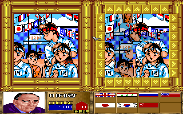 Most presidents (YS was a common abbreviation for Korea's president from 1993 to 1998, Kim Youngsam) are put ino generic fighting costumes, but there's also some odd ones, like Boris Yelzin in the Street Fighter II dictator outfit. Like in so many other 90s PC fighting games, the controls are nothing short of atrocious, rendering the game virtually unplayable.