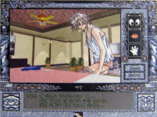 The graphics consist of a mix between pre-rendered 3D backgrounds and hand drawn characters, which look very out of place. The game was originally supposed to contain some mild nude scenes, but those were removed prior to release9.