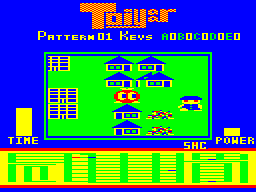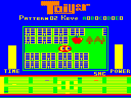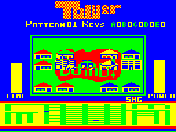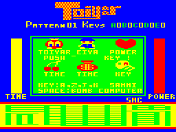 Originally a PC-6001 title from PiO '86/04, in Toiyaar the player takes control of what looks like a tomato with legs, and has to conquer huge labyrinths by finding keys and unlocking doors. Most of the labyrinth consists of houses and appartment blocks, which can be torned down with explosions. This is necessary because most items are hidden in the wreckage. Often the houses containing stuff are easily recognizable (like one single house in midst of skyscrapers), but others are just randomly hidden and require much experimenting.