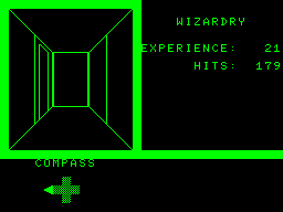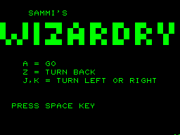 Despite the title Sammi's Wizardry doesn't have much in common with the legendary RPG series other than taking place in an abstract first person representation of a dungeon. There's only two kinds of random encounters that both just diminish the player's HP while raising experience points, without any visual feedback or interaction from the player. The supposed goal is to find the exit at each stage. Graph paper and a pencil are mandatory tools.