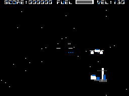 The goal is simple: Eliminate a given number of enemies before the fuel runs out to reach the next stage. Besides steering the ship one has also to control its speed, as the enemies tend to give it a wide berth and have to be chased most of the time. A hit doesn't mean instant death, but first only cracks the "windshield" as graphical feedback for the damage.