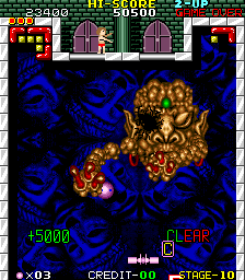 Many stages are populated by weird creatures, but they're just obstacles and not a real threat. The same goes not for the bosses, which can grab the paddle and thus make it unable to catch the ball. They also take far too many hits to defeat, but damage is signified by their eyes getting pierced out - ouch!