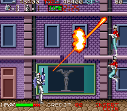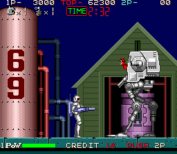 The intro to this game has to be the funniest thing in history. The damsel in distress gets kidnapped by relaxed terrorists, while the two "heroes" just sit quietly on a table right next to the scene, not moving a muscle until after the deed was completed. Only then are they moving out to "rescue" her. Even at the end of each stage, a terrorist runs into the screen holding the hostage, just to mock the completely apathetic protagonists.