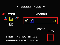 The game starts out pretty fun, but later levels grow only more annoying instead of more challenging. Enemies take forever to kill, items can hardly even found anymore without the rare spectacles, and some of the bosses are downright unfair. At least the current status can be preserved through one of the weirdest password systems ever: Passwords aren't entered in a simple line, but a strange diamond shape.