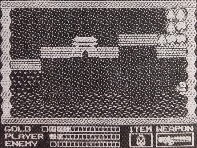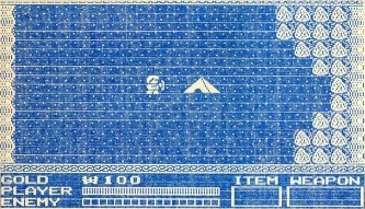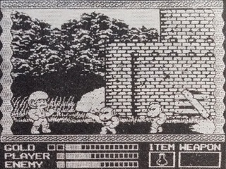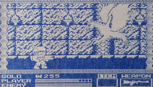 Similar to Zelda II, the game is divided into an outer world displayed from a top-down view and sidescrolling dungeons. The stages seem to be much more linear, though. Information about gameplay details is very limited, as the game hasn't been preserved by now. However, there is a scan of the manual, showing and describing several items, weapons and enemies.