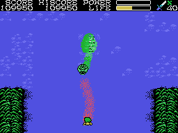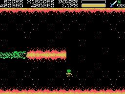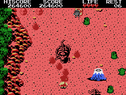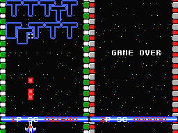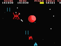 Not only does the game know what it can demand from the MSX1, but also what to expect from the player. The game is hard, but not inhumanly so. Enemies don't spare any bullets and attack in whole squadrons at a time, but the player's ship is protected by a rechargeable shield, and with the right amount of speed upgrades, dodging is a piece of cake. The bosses are almost too easy, and despite their individual sprites, they all act more or less the same.