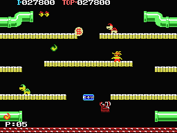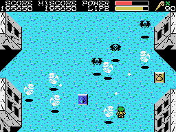 Zemina's first game is basically Mario Bros. for the MSX. The sprites are all redrawn and the characters renamed, so Titan is conquering the sewer with his brother Gamma. All the enemy types, levels and bonus rounds are in, but flickering is even worse than on the NES. Mario's trademark skidding is missing in this version, which makes it somewhat more playable, but physics behaviour is a little odd, to say the least. The best thing about this version is that music is played during the levels, where Mario Bros was rather silent.