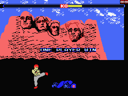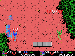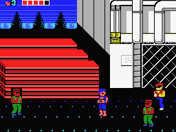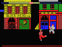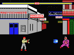 After their first few releases, Zemina seemingly became bold enough to use the games' official names for their ports. Double Dragon is one of their technically weaker early programs. The enemies all have a neat black box around their heads and move about as smoth as the digits on a digital watch. The game has only three types of foes, a bright skinned guy, a dark skinned guy and green Abobo. There's not even a proper final boss, just another Abobo who takes hundreds of hits. The moveset is converted properly, though some maneuvers like throwing are a bit tricky. Very rarely enemies drop a throwing knife, which is the only available weapon. Everything wouldn't be too bad if it weren't for the extremely annoying AI for enemies, who always sneak around areas the player can't reach.