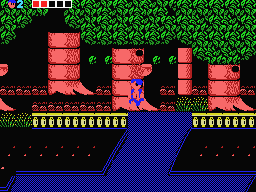 The graphics are all new, though some still betray their inspiration, like the hero's helmet, that is a powerup here. There's ten weapons and various other items to be found in initially invisible boxes, that need to be discovered by shooting at them. Multiple weapons can be carried at the same time and swapped through when needed.