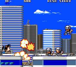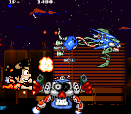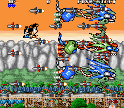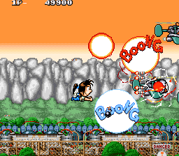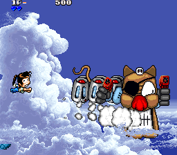 Afega's first shooter wasn't an original game, but ripped straight from NMK's US AAF Mustang, only with almost all graphics changed for a much more goofy design4, while most of the music was stolen from Sonic Blast Man on the SNES5.