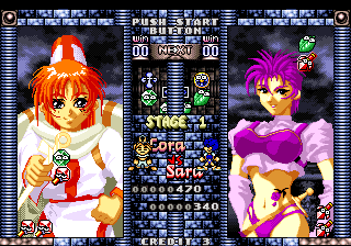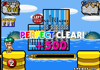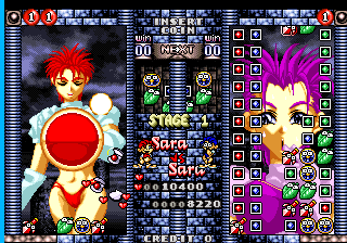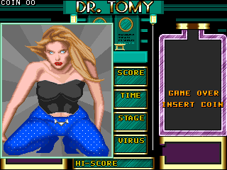 Splash! might or might not mean the game released by Gaelco in 1992, the release of Sliver by Hollow seems a bit late to match with the Windeal title. The only definitely identified title is Dr. Tomy, which appeared in Europe through the bootleg company Playmark. It is an adult clone of Dr. Mario where players get to undress their all-female patients while wiping out the viruses. New elements like giant viruses that jump into the tube and shuffle everything and a time limit don't do as much to make the game more exciting as the semi-nude images do.