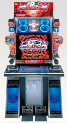 Just as obvious a clone of Beatmania as Dance Dance Diet was of DDR, EZ2DJ proved much more successful, for a while becoming the DJ game equivalent of what Andamiro's Pump It Up was in the dancing game sector, until the unfortunate lawsuit that ended it.