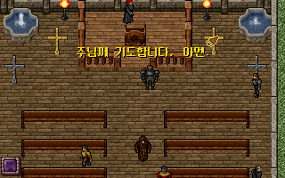 Only 8 years after the first Sin'geom-ui Jeonseol was released, Nam finally got around to making the sequel he announced back in 1987. The scenario is much darker and more elaborate this time: After an introductionary cut scene showing a mysterious cult performing a ritual that involves a newborn baby, the game puts players in the shoes of Garwell, member of a formerly glory knight order that is now persecuted as heretics for denouncing the god Liar. He meets up with the only three other surviving members of the order to plot a coup, but the band is surprised and all are either killed or arrested. As the only survivor, Garwell has to escape the prison and restore the reputation of his former order and prevent the birth of the demon god.