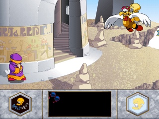The only direct numbered sequel Family Production ever produced uses prerendered sprites like Digital Code. Py & Gity 2 looks especially hideous, though, completely throwing away the cartoon charme of the first 1 1/2 games in the series. Added elements are an item shop and a new friend of the two animals, a bird who remotely resembles Gyro Gearloose.
